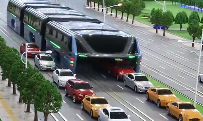 Китайцы создали уникальный автобус, которому не страшны пробки (ВИДЕО)
