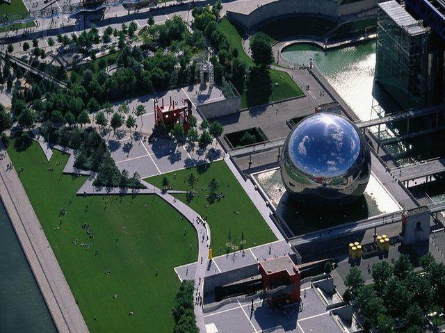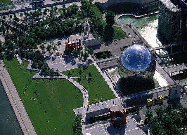 Так кинотеатр Ла-Жеод во Франции один из числа самых больших зеркальных зданий мира. Строение представляет собой геодезический купол, а издали напоминает огромную каплю ртути. Диаметр купола составляет 36 м, высота достигает уровня 7-8 этажа. На обшивку строения потребовалось 6433 стальных треугольников, отполированных до зеркального блеска.