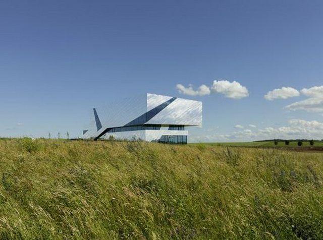 Сливается с окружающим пейзажем и исследовательский центр Palaon в Шенингоне (Германия). Абстрактный фасад трехэтажного здания обшит металлическими кассетами.
