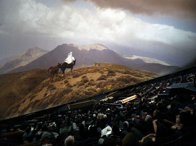 Экран кинотеатра также выполнен в полусферической форме диаметром 26м. Такие большие размеры нужны, чтобы транслировать фильмы по системе IMAX. Большинство французов на момент окончания строительства в 1985г были не знакомы с технологией показа широкоформатных фильмов, поэтому вскоре кинотеатр стал одним из наиболее посещаемых.