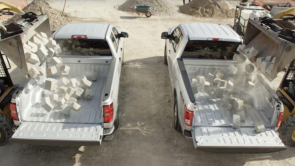В общей сложности производитель сравнил 12 пар погрузочных площадок Silverado и F-150, которые были куплены в обычных дилерских центрах. В «живой» демонстрации клиентам из багажных отсеков были убраны защитные пластиковые накладки, чтобы можно было наглядно оценить повреждения. В кузов машин с высоты полутора метров сбрасывались кирпичи общим весом 374 килограмма.