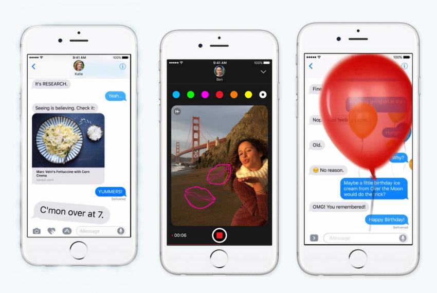 Отметим, что в iOS 10 компания реализовала в iMessage ряд новых, в том числе для рынка мессенджеров фишек. Сообщения поддерживают анимированные символы, например, воздушные шары, конфетти и фейерверки на весь экран, невидимые чернила — текст сообщения получатель видит только когда проведёт по нему пальцем, — а также заметки от руки. Автоматические подсказки позволяют в одно касание заменять текст на эмодзи, функция Tapback позволяет одним нажатием ответить на сообщение, а поддержка медиаконтента в ссылках дает возможность просматривать и воспроизводить контент, не покидая беседу.