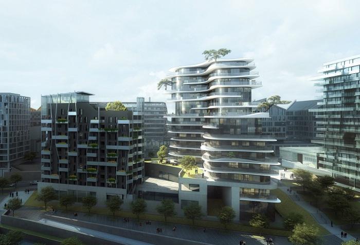 Волнообразные бетонные конструкции на каждом из этажей будет образовывать своеобразные террасы, на которых разместят много зеленых растений. А с верхних этажей здания откроется вид на главную достопримечательность Парижа – Эйфелеву башню.