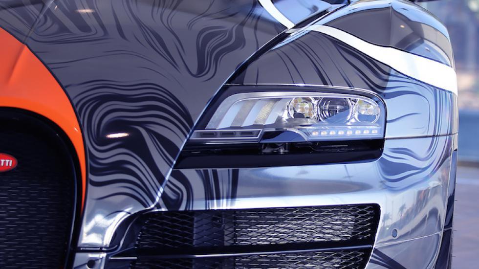 Мощь суперкара не поменялась после декоративных работ: 8.0-литровый двигатель W16 с четырьмя турбонагнетателями мощностью 1200 л.с. Максимальная скорость - 431 км/ч, достаточно, чтобы мир вокруг стал казаться очень медленным.