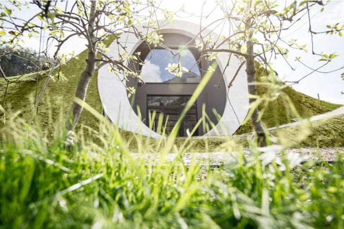 Команда дизайнеров и архитекторов из компании Noa* в 2016 завершила работу над оздоровительным центром на базе отеля Apfel. Среди спа-локаций находится и сауна (Applesauna). Сразу кажется, что это настоящий холм, но при более тщательном рассмотрении, можно увидеть деревянную дверь, окруженную железобетонным каркасом.
