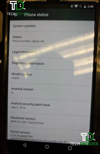 Как видно, аппарат заключен в специальный футляр, который тщательно скрывает особенности его дизайна. На экране устройства можно рассмотреть название модели (Marlin), а также версию ОС – это новейшая Android 7.0.
