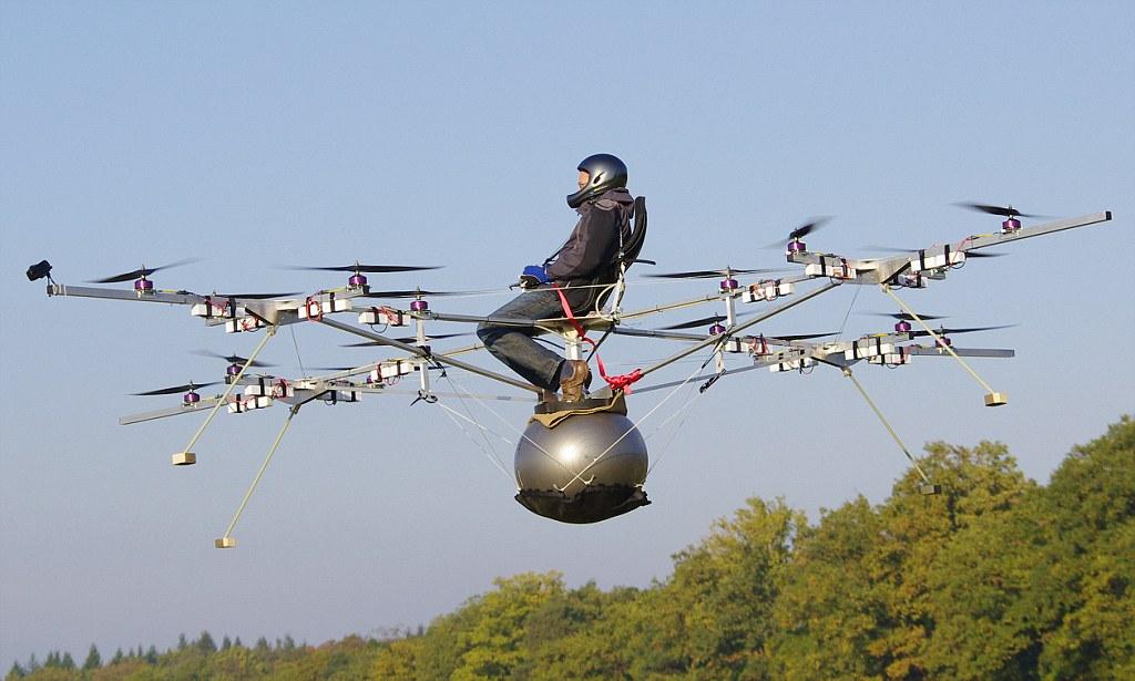 Поднимается кресло в воздух с помощью восьми двигателей. Также в конструкцию входит кресло с шестью балками, две продольные и четыре поперечных. Емкость с топливом находится сзади, а управляется все это пультом управления.