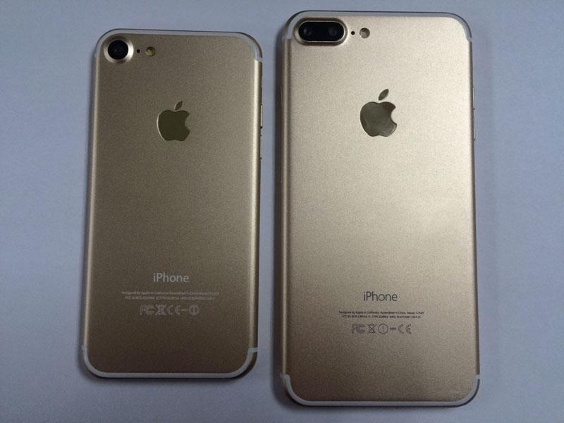 Помимо задней стороны iPhone 7 и iPhone 7 Plus на фото показаны устройства с фронтальной стороны. У гаджетов механическая кнопка Home, а не сенсорная, о чем писали осведомленные источники. Фотографии также подкрепляют утечки о появлении укрупненного «глазка» камеры iPhone для качественной съемки в условиях плохой освещенности.