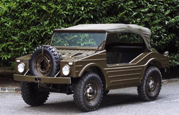 Porsche 597 – военная машина, созданная в расчете на поставки в армию Западной Германии. Кузов автомобиля представляет из себя несущий монокок, лишенный даже дверей. В традициях Porsche автомобиль получил заднемоторную компоновку и полный привод. Мотор – скромный четырехцилиндровый 50-сильный агрегат от спорткара Porsche 356, позволявший внедорожнику Porsche разгоняться до максимальных 100 км/ч.
