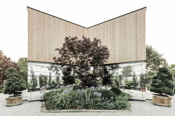 Форма трехлучевой звезды, которая ассоциируется с прорастающим семенем, позволила создать необходимую непрерывность внутреннего пространства и открыть разные виды на окружающие растения. Использованные в строительстве материалы – ель и ясень – поддержали концепцию экологичности здания, однако при этом не были самоцелью.