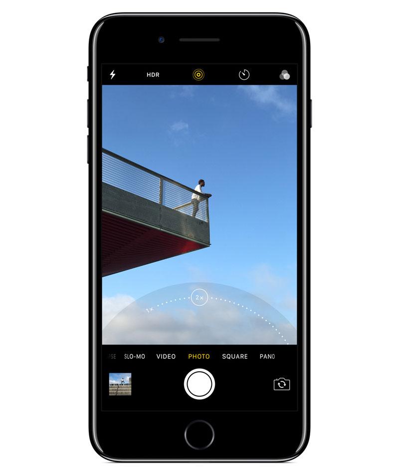 В iPhone 7 Plus основная камера стала двойной: одна с широкоугольным, другая с телеобъективом, благодаря чему в камере появилась функция двукратного оптического увеличения, дополненная 5-кратным цифровым. Благодаря новой системе двойной камеры и программным технологиям владельцы iPhone 7 Plus могут добиваться реалистичного эффекта боке на смартфоне. Особенно это актуально для любителей делать портреты и автопортреты: размыв фон, можно акцентировать внимание на лице.