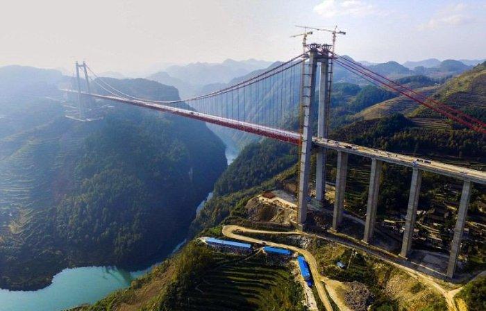 Подвесной вантовый мост, получивший название Бэйпаньцзян (Beipanjiang), протянулся на 1,34 километра, соединяя между собой китайские провинции Юньнань и Гуйчжоу. Сложные рельефные условия местности привели к тому, что инженерам пришлось поднять мост на высоту 570 метров.