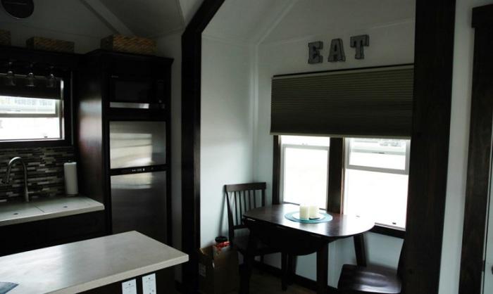 Освещение обеспечивают светодиодные лампы. На крыше домика установлены солнечные батареи. Сзади домика установлены емкости для пресной воды. За этот небольшой но функциональный дом на колесах разработчики просят 68 899 американских долларов.
