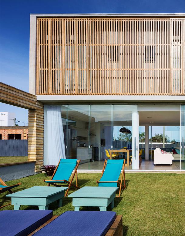 В доме организованы две гостиные, две отдельные обеденные зоны, а также четыре просторные спальни с санузлами, рядом создан большой сад. Выходящая на восточную сторону стена из жалюзи поддерживает ощущение легкости и способствует естественному освещению приватной зоны.