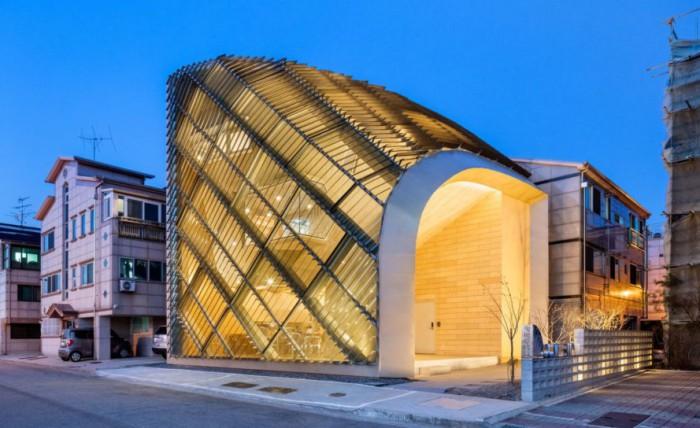 Архитектурная фирма AND спроектировала и реализовала строительство нового современного дома под названием Louverwall в Южной Корее. Одну из сторон элегантно скрывает решетчатый экран. Алюминиевые жалюзи разработаны с использованием параметрически разработанной жалюзийной системой – PLDS (Parametric System Design LOUVER) основанной на алгоритме, вычисляющем оптимальное положение и расстояние каждой ламели.