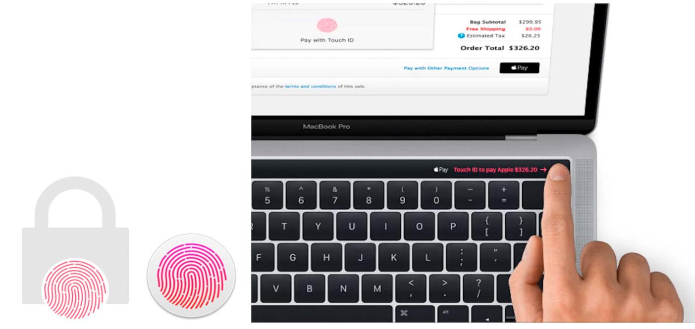 На двух других изображениях показаны иконка с отпечатком пальцев и замка со значком Touch ID. Таким образом, получено наглядное подтверждение, что новые MacBook позволят, не вводя пароль, разблокировать устройство и совершать платежи при помощи сканера отпечатков, как на iPhone и iPad.