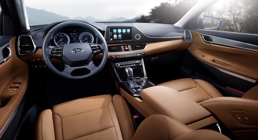 Салон получился довольно консервативным. Из примет хайтека — только «планшет» посреди передней панели, который «уравновешивают» аккуратные ретрочасики: в Южной Корее Hyundai Grandeur часто используется как представителький автомобиль, а потому авторы интерьера не решились на дизайнерскую революцию.