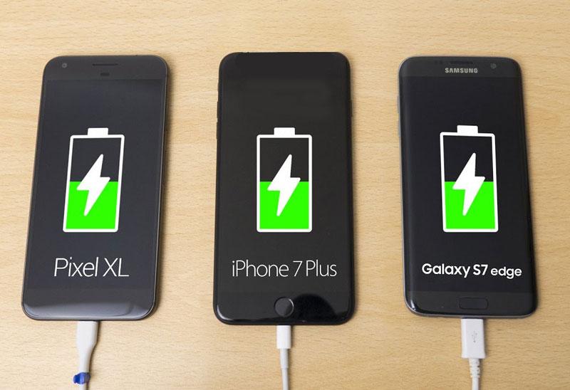 Блогер провели эксперимент с тремя смартфонами iPhone 7 Plus, Pixel XL и Galaxy S7 edge. У всех устройств аккумуляторы разной емкости – 2900 мАч у первого, 3450 мАч у второго и 3600 мАч у третьего. В рамках теста измерялась скорость восполнения заряда от 1% до 100%.