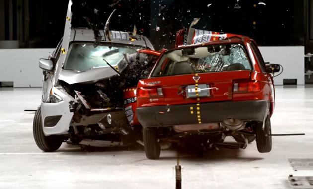 Эволюция автобезопасности: Nissan Tsuru и Versa столкнули «лоб в лоб» (ВИДЕО)
