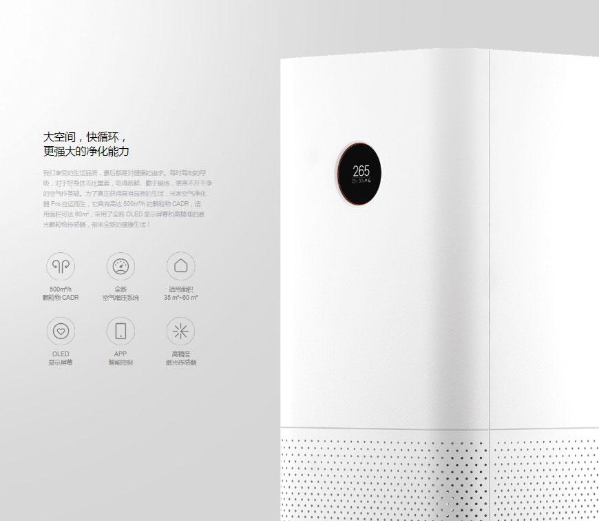 Mi Air Purifier Pro представляет собой новое поколение очистителей воздуха китайского бренда. По сравнению с предшественниками новинка обзавелась OLED-дисплеем и рядом усовершенствований. Теперь устройство способно в режиме реального времени отображать всю информацию — рабочие показатели очистителя и качество воздушной среды — без необходимости запускать для этой цели мобильное приложение.