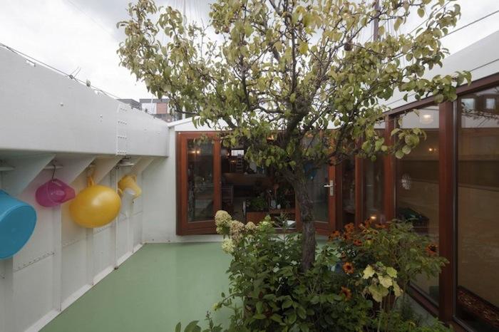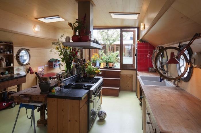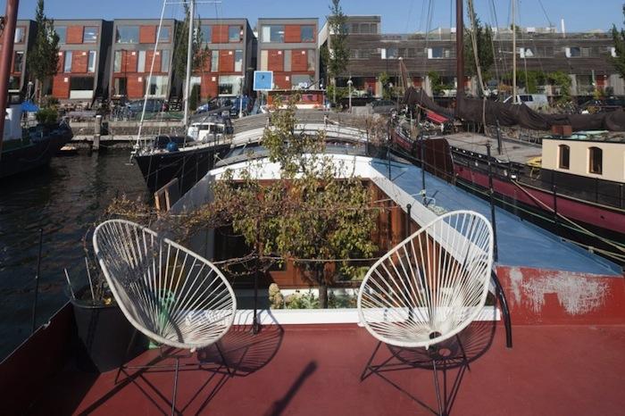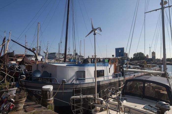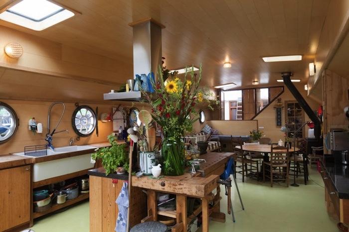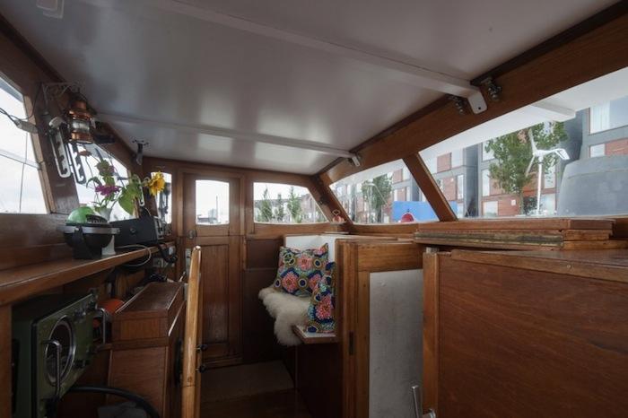 Идея сделать из водного транспортного средства уютную обитель принадлежит креативным хозяевам судна — ресторатору и художнице. Проектом реконструкции занималось нидерландское архитектурное бюро BBVH.