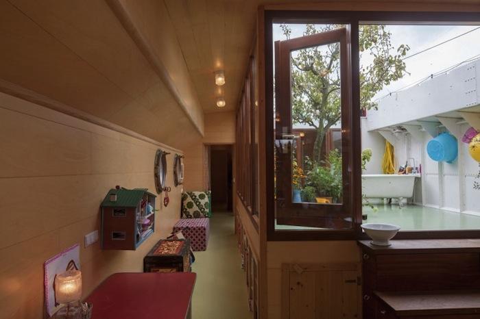 В передней части корабля, где ранее обитал экипаж, находится детская комната. Дальше по коридору — ванная, спальня и выход на зеленую террасу, которая по совместительству служит детской игровой площадкой. Салон на верхней палубе и рулевой отсек также модернизированы и сдаются в аренду как отдельные апартаменты.