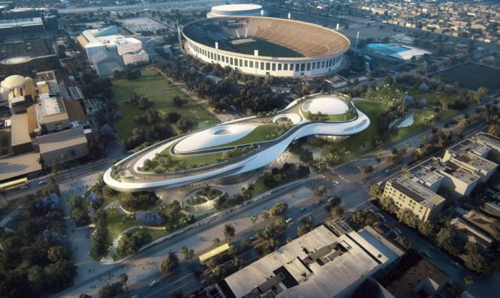 Второй проект подразумевает расположение музея в Exposition Park в Лос-Анджелесе. Во многом он напоминает предыдущий концепт, но есть и различия. На крыше здания предполагается построить террасы с зелеными растениями, напоминающие парковую зону.