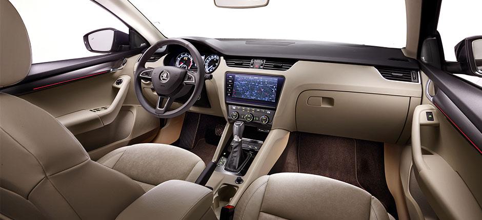 В версии Ambition Octavia теперь может оснащаться бежево-черным салоном, который был доступен раньше в более высоких комплектациях, а в комплектации Style и Laurin & Klement появилась подсветка дверных карт, причем ее цвет можно менять при помощи бортовой электроники.