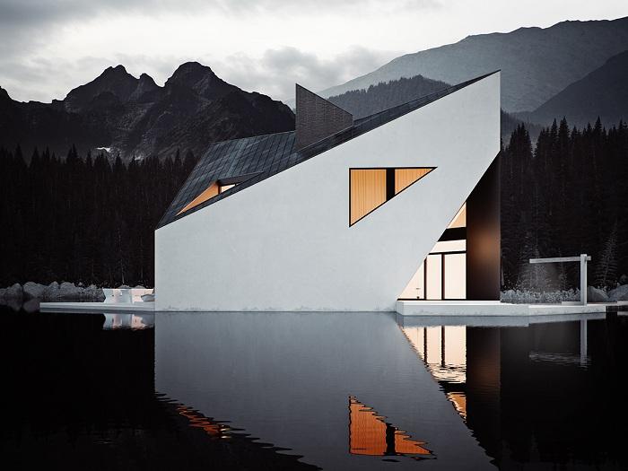 Архитектор польской практики 81.WAW.PL. Михал Новак (Michal Nowak) разработал концепцию загородного жилого особняка под названием The Crown House. Острые лучи дома действительно напоминают эдакую футуристическую корону, расположенную на водной глади озера.