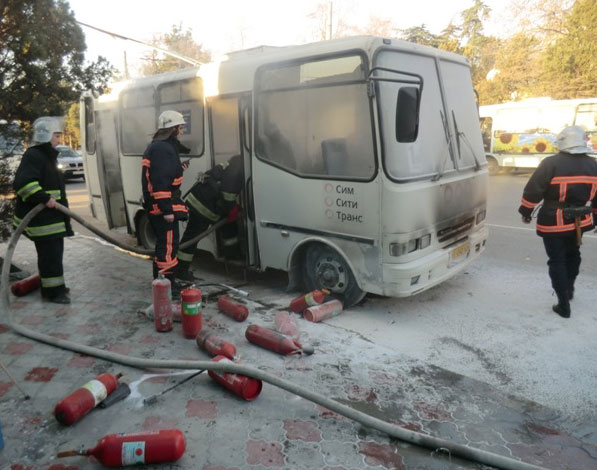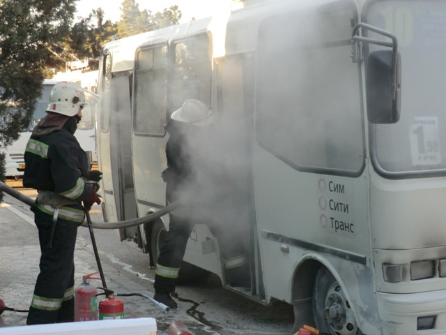 В Гагаринском районе Севастополя на стоянке городского транспорта загорелся автобус. Пожарные сразу выехали на место происшествия.