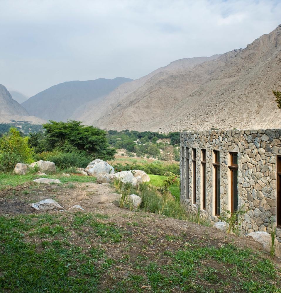 Постройки, сделанные из местного камня и самана, расположены так, чтобы не нарушать гармонию местности и выглядят очень естественно среди хвойных деревьев и гор.