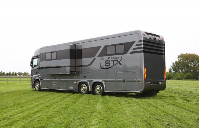Автодома проекта STX Motorhomes очень просторные, с «умной» компоновкой и большими пространствами для личных вещей и багажа. В зависимости от выбора базовой модели грузовика доступны множество модификаций. Популярный выбор - STX Mercedes Actros. С мощным двигателем в 510 л.с. это, наверное, один из самых мощных доступных образцов. У него в наличии роскошная ванная, большая спальная кровать и просторная гостиная с полностью оборудованной кухней.