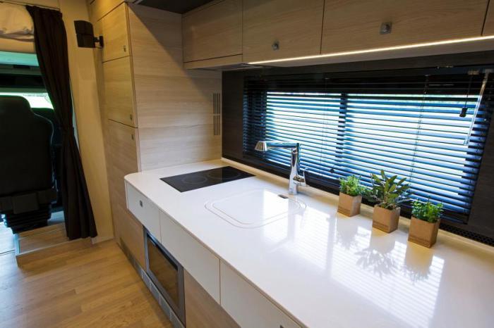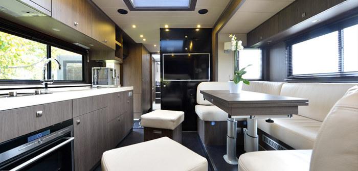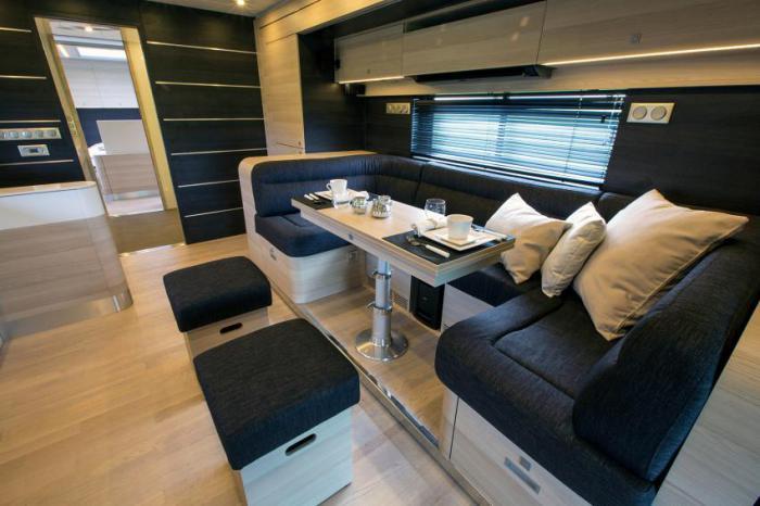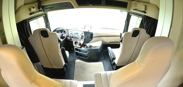 Дизайн интерьера вдохновлен убранством частных самолетов и классическим контрастным дизайном. К ценным породам дерева добавлены натуральная кожа и элементы из углеволокна. В жилых помещениях доминируют благородные и высококачественные материалы. Конечной же целью концепции является получение лучшего в мире дома на колесах.