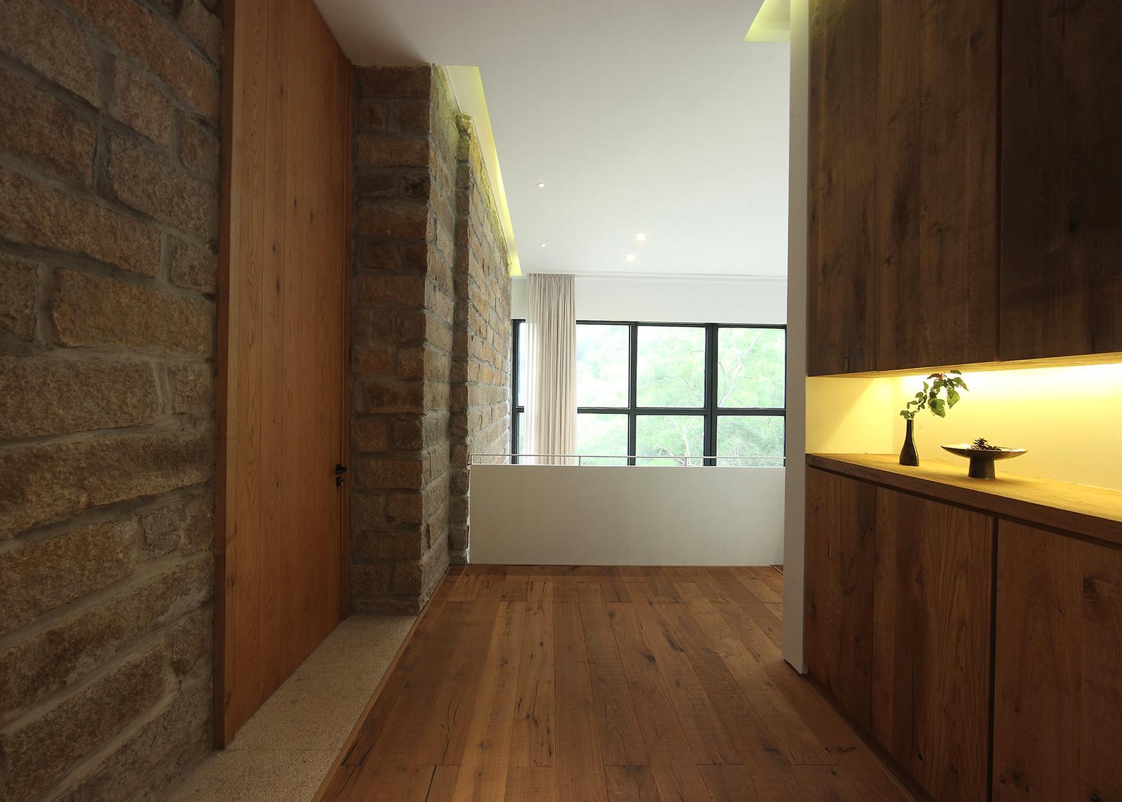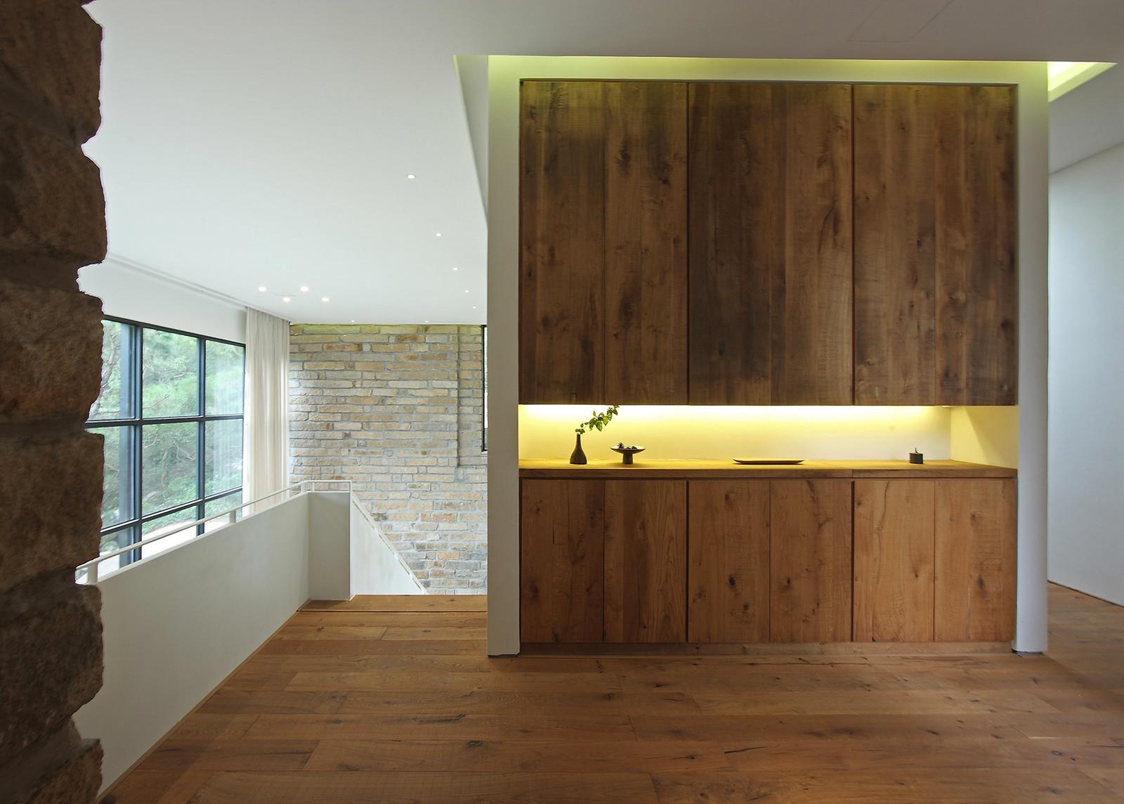 Новый дом вдали от города призван вернуть владельцу гармонию с природой и спокойствие деревенской жизни. Двухэтажная постройка имеет мебель и отделку из натуральных материалов и использует естественный рельеф местности. Интерьер постоянно взаимодействует с элементами живой природы через большие панорамные окна или открытые части каменных поверхностей отделки. Полы выполнены в том же формате: прохладная плитка на нижнем этаже и тёплые твёрдые деревянные половицы — наверху. Площадь постройки составляет 390 квадратных метров.