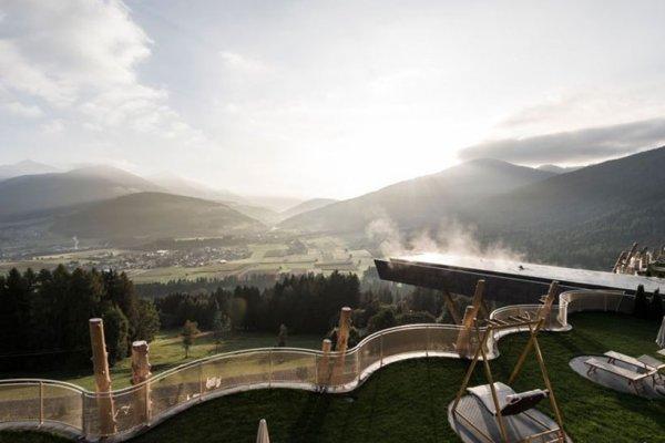 Бассейн с оригинальным дизайном построили рядом с популярным горнолыжным курортом Кронплатц в городе Вальдаора на территории отеля The Hotel Hubertus. 12-метровая конструкция зависла в воздухе на высоте 25 метров.