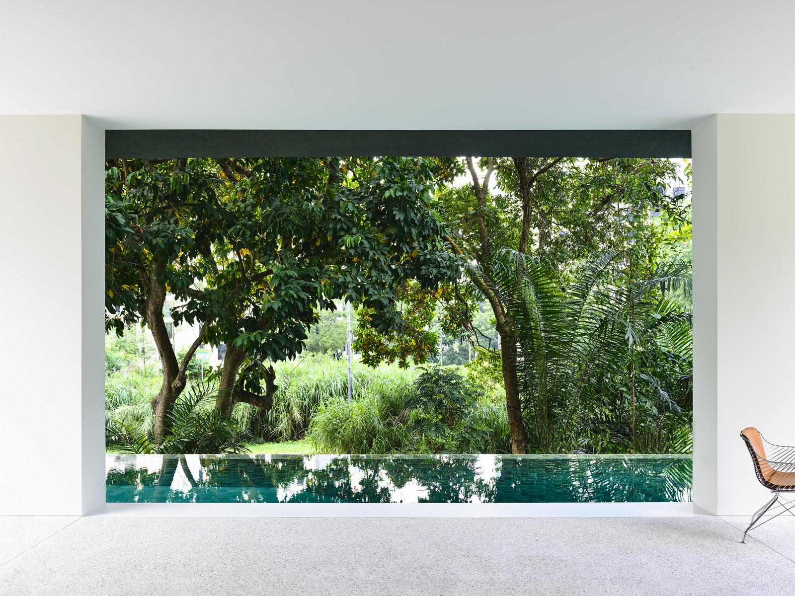 Разработавшие проект дома ONG&ONG Architects взяли за основу принцип «заимствованного вида», или Shakkei, широко распространённый в японском дизайне, который предполагает внедрение существующего пейзажа в композицию сада, в данном случае — жилого дома, окружённого садом.