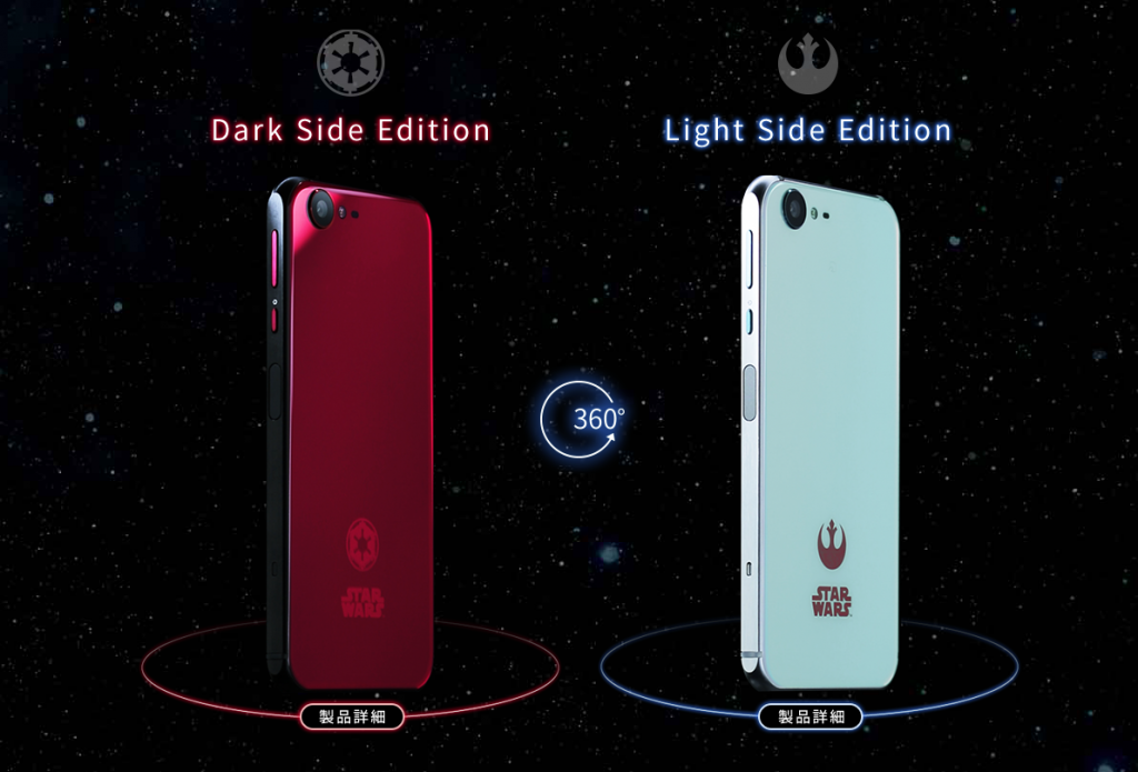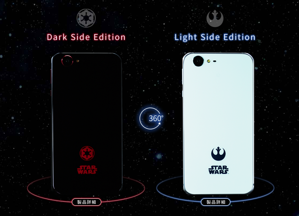 Начинка останется без изменений, эксклюзив получит особенные окраски корпуса: Dark Side edition и Light Side edition. На стороне тёмной силы? Выбирайте аппарат черного цвета с красными кнопками и красной задней панелью. А если перешли на светлую сторону, то получите полностью белый корпус.