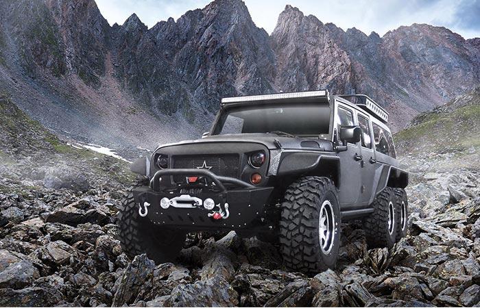 Читайте также: ТОП-5 самых экономичных марок автомобилей 2016 года (ФОТО)Китайцы проделали внушительную работу. Во-первых, они почти полностью поменяли начинку, добавив машине немного мощности. На смену старому двигателю пришел новый на 3.6-литра и шесть цилиндров. Была увеличена мощность нагнетателя. Полностью заменены были колеса и мосты. К слову, один мост пришлось добавлять, в результате чего машина стала шестиколесной.
