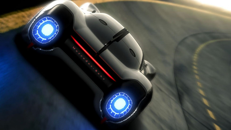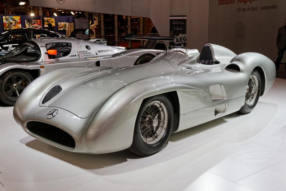 О чем красноречиво свидетельствуют два истребительных сопла сзади. Кстати, стримлайнер помимо футуристики содержит и уже знакомый нам по середине прошлого века стилистический контент. Некое влияние Mercedes-Benz W196R (на фото вверху) какого-нибудь 1955 года выпуска отчетливо прощупывается на картинке. Или нет?