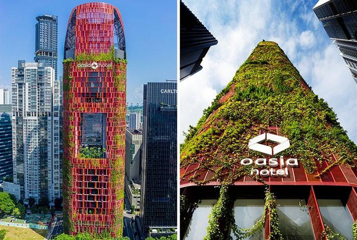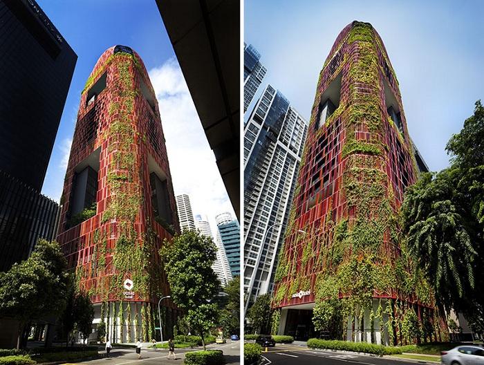 Архитекторы фирмы WOHA представили один из своих последних проектов – отель с «живым» фасадом Оasia Hotel Downtown в Сингапуре. Здание будет покрыто зелеными растениями, которые эффектно выделят его десятков других небоскребов.