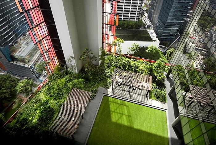 Общая площадь отеля составит 19416 квадратных метров. В здании будет обустроено несколько так называемых Sky gardens. Они представляют собой своеобразные открытые парковые зоны, где посетители смогут отдохнуть на лавочках под сенью деревьев на свежем воздухе, а не в закрытых пространствах с кондиционерами.