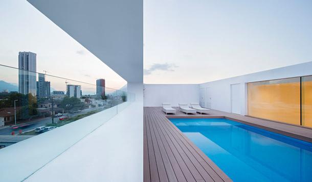 Альберто Кампо Баэса знаменит своей любовью к белой архитектуре, которая получается у него невероятно красивой и "чистой". Дом в Монтеррее не стал исключением, разве что здесь он добавил золотую стену, которая символизирует его отношение к наследию архитектора Луиса Баррагана и объясняет название проекта – "Domus Aurea", что в переводе с латыни и означает "золотой дом".