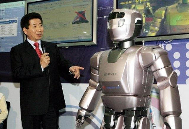 Его создала компания Korea Future Technology. Им управляет человек, который сидит в его железном теле. Он может выполнять простые функции: ходить, переносить вещи и т.п. Это, по словам представителей компании, базисная модель на основе, который создадут образец для использования в промышленности.