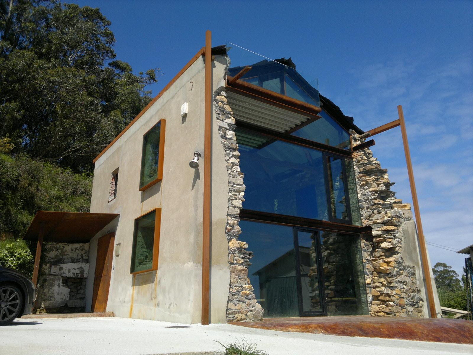 Частный дом окружен живописными пейзажами и традиционными фермерскими постройками. Тут горы соседствуют с заливом, а современный стиль уступает место функциональности с остроконечными крышами и шиферной отделкой. Архитекторы стремились сохранить атмосферу дома из детства, наполненного тёплыми воспоминаниями, при этом подчинив её современным требованиям и нуждам. Компактный объём отличается сдержанностью и аскетичностью, при этом свет, воздух и вода являются неотъемлемой частью нового дома, наполняют и украшают его. Архитекторы заменили закрытый восточный фасад панорамным остеклением, а также избавились от внутренних перегородок в пользу открытого пространства в трёх уровнях.