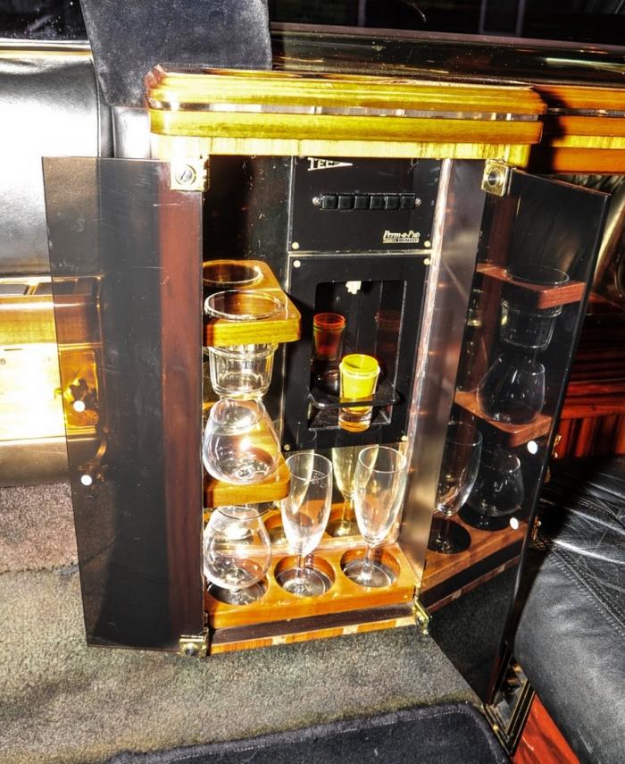 Это настоящий офис на колесах, в салоне есть: факс, телевизор, видеомагнитофон, бумагорезка, письменный стол, встроенный сейф, мини-бар и многое другое.