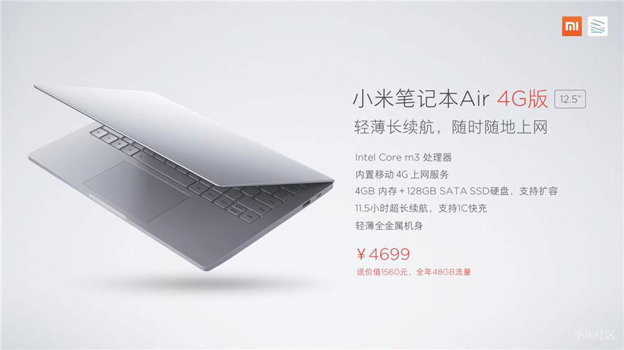 Mi Notebook Air 4G представляет собой улучшенную версию сверхтонкого ноутбука Xiaomi. Судя по названию, производитель предпринял попытку составить конкуренцию известному решению Apple с созвучным именем за счет включения в состав ноутбука модуля сетей LTE, превращающего его в независимое устройство для выхода в Интернет. Для работы лэптоп использует высокоскоростные сети China Mobile с заявленной максимальной скоростью передачи данных 80 Мбит/с.