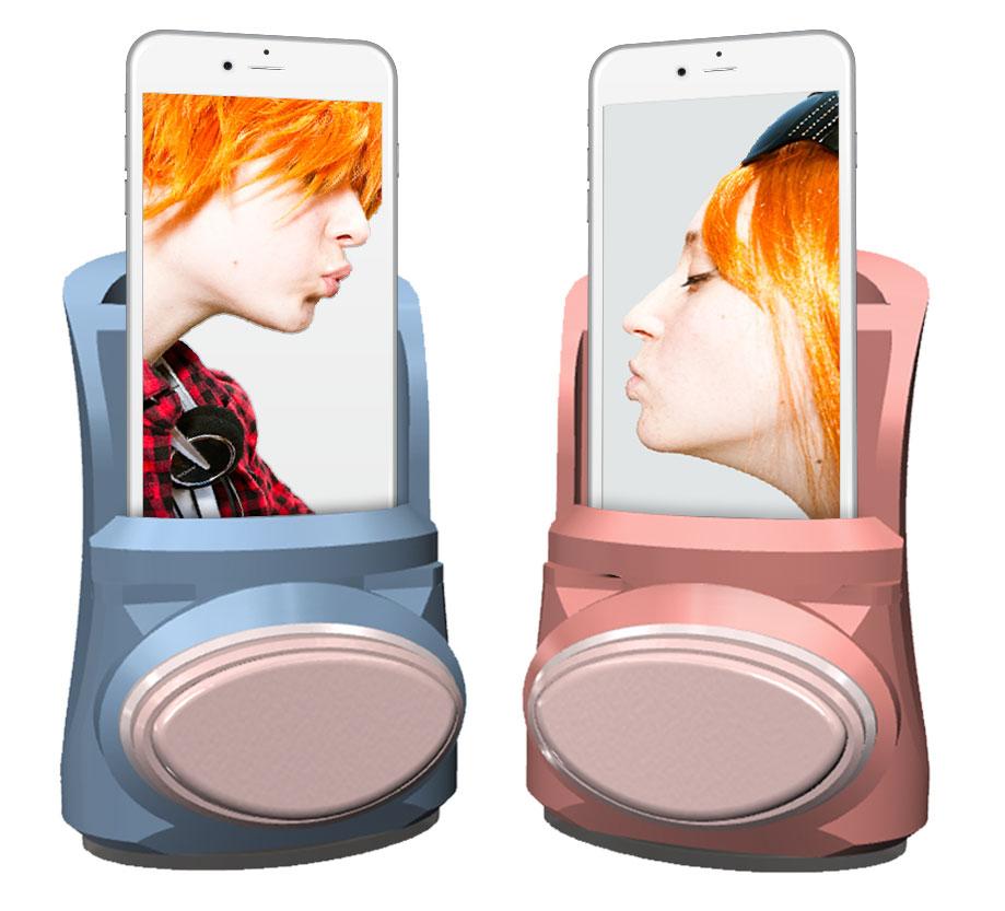 Оригинальный аксессуар получил название Kissenger. Новинка выполнена в виде подставки, в которую помещается мобильное устройство. На передней панели имеется специальная силиконовая площадка, которая снимает показания от приложенных к ней губ и передает их на другой iPhone.