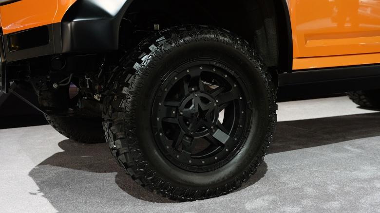 Крупная лифтованная машина крикливого цвета и нарочито-грубоватой внешности явно противоречила царящей в Кобо-холле атмосфере беспилотного футуризма и зеленых технологий. Кое-кто успел окрестить джип «самым уродливым участником шоу» - а зря, вполне себе нормальная внешность, во всяком случае, для эпохи 1990-х, когда все вышеназванные тенденции пребывали в зачаточном состоянии и бал правили автомобили с ДВС.