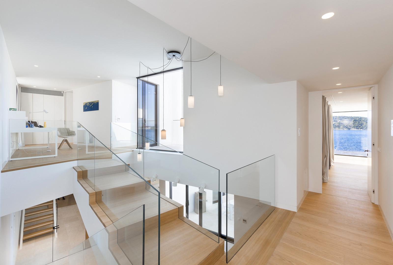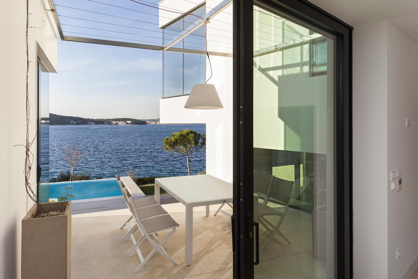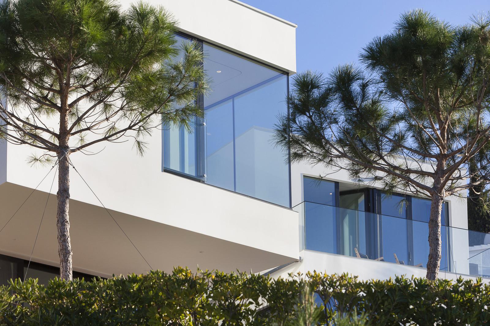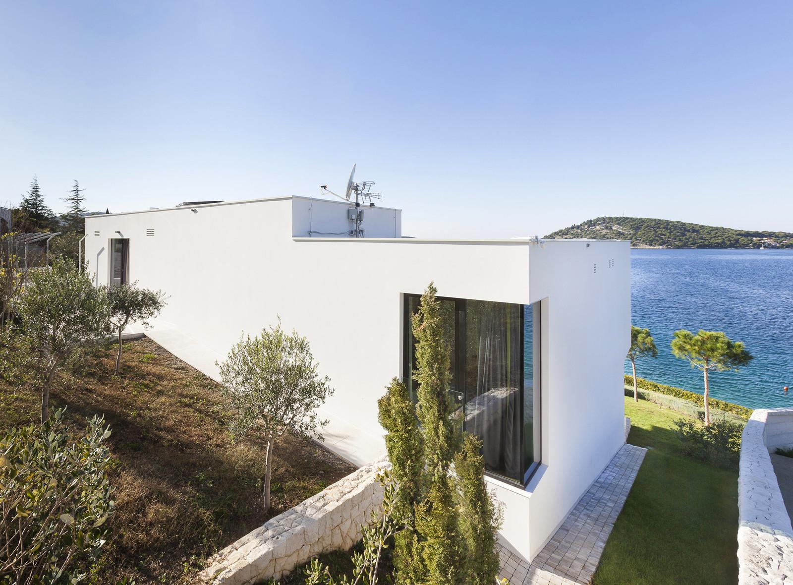 Резиденция имеет U-образную форму, повёрнута к морю и открывает потрясающие виды. Она представлена двумя этажами, которые разбиты на несколько уровней. На террасе с открытой кухней спроектирован бассейн, выступающий в роли связующего элемента между интерьером и бескрайними просторами голубых вод. Все комнаты, выходящие на эту сторону, имеют панорамное остекление, в то время как другие фасады выполнены более закрытыми.