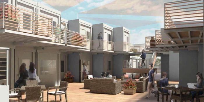 Домики очень просты в конструкции. Сборка двухэтажного 30-местного жилого комплекса с собственным внутренним двориком займет всего две недели. Подобные общежития можно строить на заброшенных автостоянках, пустующих площадках. А так как весь комплекс разборной, то жилые модули при необходимости легко переместить в другое место.